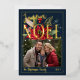 Simple real foil elegant family photo "Joyeux Noël" (Merry Christmas) poinsettia floral design with single rectangular photo Christmas holiday design. Back features a poinsettia repeat pattern.