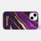 Make a statement with this purple and gold marble design cell phone cover. This exquisite case features a mesmerising marble design in stunning purple and gold tones, giving your device a unique and eye-catching appearance. Add a personal touch by customising it with your name, creating a stylish and distinctive accessory that not only looks fabulous but also keeps your phone protected. Embrace your individuality with this enchanting marble design that stands out in the crowd.