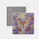 A magnet with an illustration of a beautiful gold and purple butterfly surrounded by white and purple flowers. It's done with an impasto style and just emanates beauty and grace.