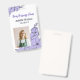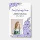 Vertical floral employee ID badge with beautiful purple flowers and sprigs, your employee's name and title, and your business name in purple.