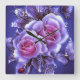 Beautiful Purple Neon Rose and Lady Bug Square Wall Clock
