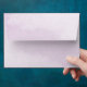 Beautiful romantic purple lavender and white flowers with green leaves botanical wedding envelope.