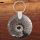 Beautiful pyrite ammonite fossil showing sutures key ring