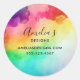 Business stickers with a watercolor background featuring colours of the rainbow.