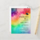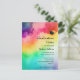 Graduation invitation with a watercolor background featuring colours of the rainbow.