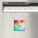 A magnet with a watercolor background featuring colours of the rainbow. Text says: Storms don't last forever.