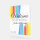 Beautiful personalised rainbow watercolor Welcome to Our Wedding acrylic sign with pretty, artistic paint strokes full of bright colour for an LGBTQ event. Customise with your name in elegant cursive script.