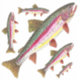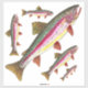 The beautiful Rainbow Trout. For those who love fly fishing, bait fishing or lure fishing. 5 images of oncorhynchus mykiss in different sizes, all on the same sheet. The image is from an original watercolor painting by Mr. Trout Whiskers. Makes an excellent gift for Christmas, Birthday, ANY day of the year! Find lots of fishing gear at the TroutWhisker Store - apparel, for home, for office, decor for a fishing lodge or cabin and all the places where people love fish.