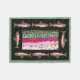 This handsome fleece blanket features 8 Rainbow Trout with the centre of the blanket showing this fish's beautiful skin in all of its beautiful colours and pattern. The blanket is a deep green with a lighter green border. Perfect for a home, office, den, fishing cabin, fishing lodge, bed and breakfast, store or shop and anywhere else people speak the language of trout. Makes a wonderful gift for both fishermen and ichthyologists alike. The art is from an original watercolor painting by Mr. Trout Whiskers. This same oncorhynchus mykiss is also available on hundreds of other items at the Trout Whiskers Shop. Check it out - you'll find great fishing gear for men, for women, for kids, for babies and even for your dog!