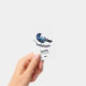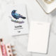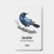 A name tag with a lovely watercolor drawing of a crow. Dark blue and vibrant purple colours accentuate the beauty of this bird.