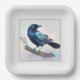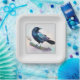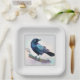 Paper plates with a lovely watercolor drawing of a crow. Dark blue and vibrant purple colours accentuate the beauty of this bird.