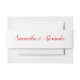A beautiful belly band has a white background with red cursive font. The couple's name is inside of an easy to fill in template. Personalise yours today!