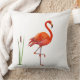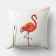 Beautiful Red Flamingo Bird & Reed Plant on White Cushion
