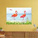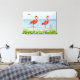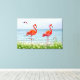 Beautiful Red Flamingos near White Flowers Canvas Print