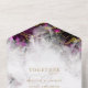 All in One Wedding Reception and RSVP Tri-fold Invitation - Stunning red garnet gemstone crystal geode accented with sparkling marbled gold nugget veining and quartz crystal - coordinating reverse.