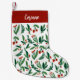 Beautiful watercolor green leaves with red holly berries decorate this cute custom Christmas stocking. Personalise the festive red and green holiday stocking with your name above the gorgeous botanical pattern.