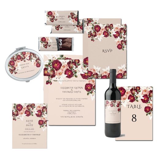 Beautiful Red Pink Roses White Lilies Wedding RSV RSVP Card