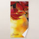 Beautiful, elegant bathroom towel set of three pieces: Washcloth, hand towel, bath towel. Autumn garden floral theme. Red vine leaves, black wooden trellis, sunlit yellow, and orange colour background. One-of-a-kind, unique and stylish home, bathroom towels for anyone. Customisable. You can change or delete the template name. To change a font use Customise button. You can transfer this design to another product of your choice, just use an option to the right of this description. Enjoy and be happy!