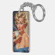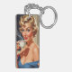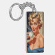 Beautiful Retro Woman with a cup of coffee Key Ring