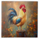 This beautiful painting of a rooster showcases its graceful plumage, bathed in warm tones that highlight the bird's elegance. With its striking colours and intricate details, this artwork captures the rooster’s lively and proud nature in a serene, rustic setting.