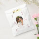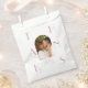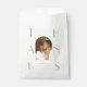 Chic rose pink thank you wedding favour bag. This modern design features an arch shaped photo and bold typography.