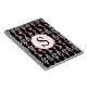 A monogram theme using lovely contrasting colours, this notebook is one of a kind. Featuring a beautiful pink and white rose vine on black as the background, there is a pink circular graphic in the middle that makes the perfect monogram label. Place your order today!