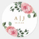 Pretty watercolor floral pink roses and greenery sticker with bride and groom's monograms and wedding date.