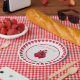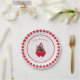 Beautiful ruby anniversary paper plate with hearts and flowers on light silver colour background. Text "Ruby Anniversary" can be personalised.