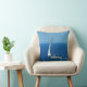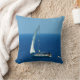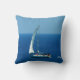 Nautical image of a gorgeous sailboat on bright blue water on a pillow. Digital photography by Sue Melvin