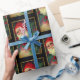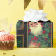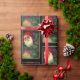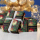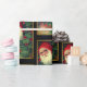 Christmas Santa Claus portrait in vivid colours of red white and green Christmas tree, set inside gold borders