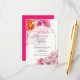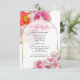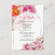 Details wedding enclosure card - Modern text fits nicely inside this beautiful sheer white gold edged arch frame that shows the underlying fantasy bright fuchsia scarlet peony flowers edged in gold - original artwork © by WhimsicalArtwork™.