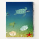 Sea turtles and shells with pearls Notebook. Beautiful relaxing ocean colours. Text can be personalised.