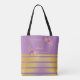 This tote bag features a beautiful and cute faux shiny golden metallic foil gradient Stripes with pink flowers text fram girly name monogram on front side violet and back side light purple background. It's a beautiful and elegant unique gift for women and teen girls . Perfect for Birthday gift, Mother's day, Valentine's day, Graduation gift or Wedding ,Bride or Bridesmaids gift. You can easily change the text and colour or remove ,it's your choice.