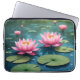 A laptop sleeve creatively designed with the nature of lotus flowers in the middle of a pond.