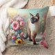 A sleek Siamese cat walks through flowers in this modern vibrant design.