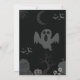 The bottom half of the invitation transitions to a deep black background, subtly adorned with faded grey decorations of skulls, bats, and tombstones. These ghostly motifs enhance the spooky atmosphere while ensuring that the text remains clear and easy to read. This seamless integration of the celestial top half with the eerie, decorated bottom creates a visually striking invitation that perfectly captures the essence of Halloween.