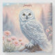 Beautiful Snow Owl, pink flowers. Editable name Stone Coaster