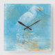 Beach and Coastal themed snowy egret decor. Snowy egret bird art on Square Wall Clock from Jenn's Emporium.
