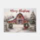 Beautiful Snowy Winter Rustic Red Barn Christmas Doormat