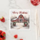 Beautiful Snowy Winter Rustic Red Barn Merry Christmas Napkins