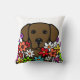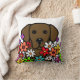 Beautiful Chocolate Labrador Illustration pillow for dog lovers who love Labrador Retriever dogs. Colourful and beautiful flowers are blooming around the dog. You can add text as you like. Created by Naomi Ochiai from Japan.