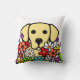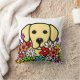Beautiful Yellow Labrador Illustration pillow for dog lovers who love Labrador Retriever dogs. Colourful and beautiful flowers are blooming around the dog. You can add text as you like. Created by Naomi Ochiai from Japan.
