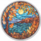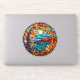 Large colourful decal for your car or SUV features a stained glass Fall water scene with autumn colours - digital illustration created with AI software.