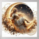 Beautiful Steampunk Woman on the Moon on a White Background surrounded by flowers.