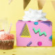 Beautiful and bright, this wrapping paper features an 80's design with colourful shapes on a pink background. The printing is vibrant, sharp and lively. Available in various styles and textures. Place your order today!