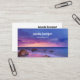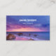 Business cards with a lovely photograph featuring striking colours of purple, blue and pink at sunset.