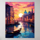 Beautiful Sunset in Venice Italy. aesthetic art print poster painting home decor of city in Europe