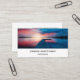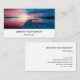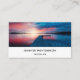 Business cards with a gorgeous photograph. A scenic spot. A nice calm lake with a wooden dock stretching outwards. Setting sun provides beautiful colours in the sky, vibrant red and blue.