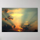 Beautiful and colourful sunset. Sun is behind the clouds and the rays of light are around