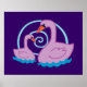 This graceful and delicate swan illustration features two beautiful swimming purple swans with long necks and violet eyes! This cute swan vector art design is stylish and lovely bringing water together with a light blue swirl in the background creating a serene and calming effect. This swan art is the perfect gift to buy for anyone who loves swans, water fowl, birds and elegant beautiful original art!